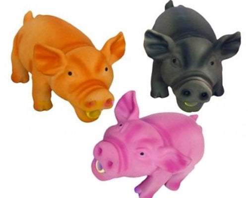 Divertente gioco in latex a forma di maialini grugniti, progettato per attirare l'attenzione del cane con i suoi suoni. Disponibile in colori assortiti.